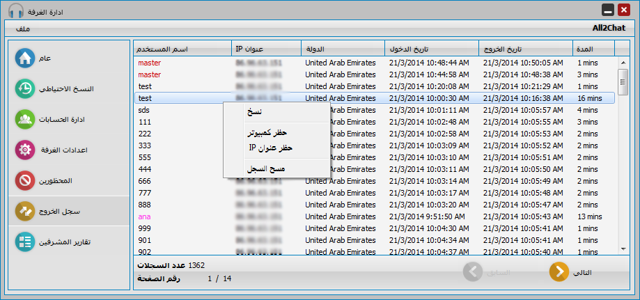 الذين خرجو من الغرفة بالاضافة لرقم الايبي