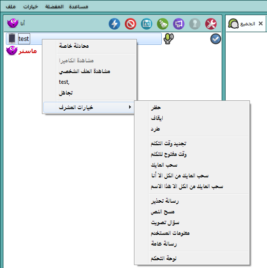 عند الضغط على زر كتم تظهر ايقونة كتم الصوت بجانب الاسم في قائمة الاسماء