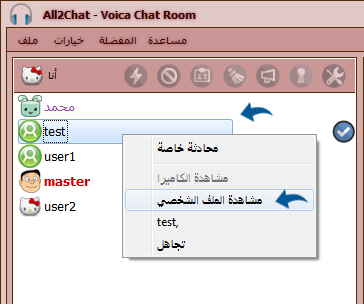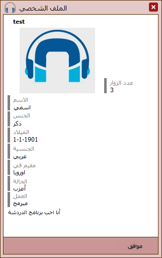 الملف الشخصي متاح فقط للأسماء المسجلة ويمكن لاي زائر مشاهدة الملف الشخصي للاسم المسجل عن طريق الضغط كلك يمين على الاسم المسجل واختيار مساهدة الملف الشخصي
