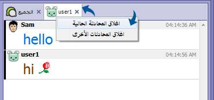 لاغلاق الدردشة الخاصة اضغط كلك يمين على اسم المستخدم الموجود بأعلى الغرفة ثم اختر ( اغلاق المحادثة الحالية )
