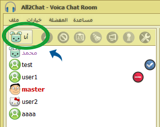 او يمكن تغيير الصورة من داخل الغرفة عن طريق الضغط على زر صلاحيات الاسم ثم اختيار الصورة المناسبة وسيتم تطبيق الصورة الجديدة مباشرة