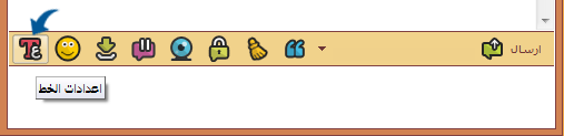 لتغيير لون الرسالة المرسلة يمكن الضغط على زر اعدادات الخط ثم اختيار زر لون الخط واختيار اللون المناسب