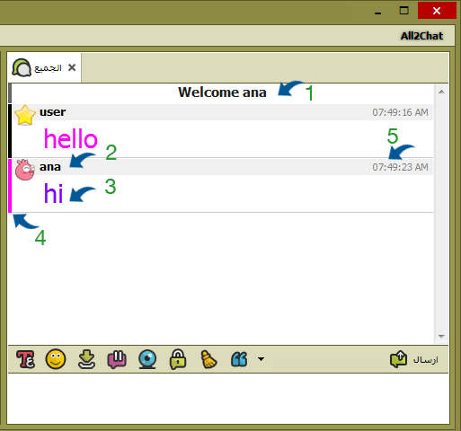 تظهر الرسائل الخاصة المرسلة والمستقبله بأعلى الغرفة جانب ( الجميع ) وكل